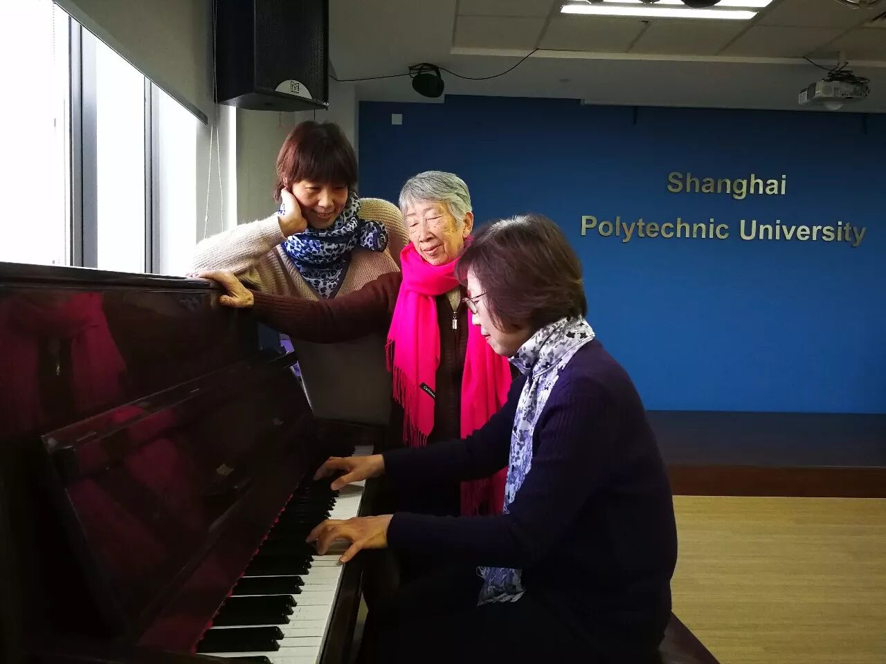 团拜期间,老同志们兴致勃勃地参观了美丽校园和学术交流中心,并在教师活动中心亦歌亦舞、尽展才艺。
