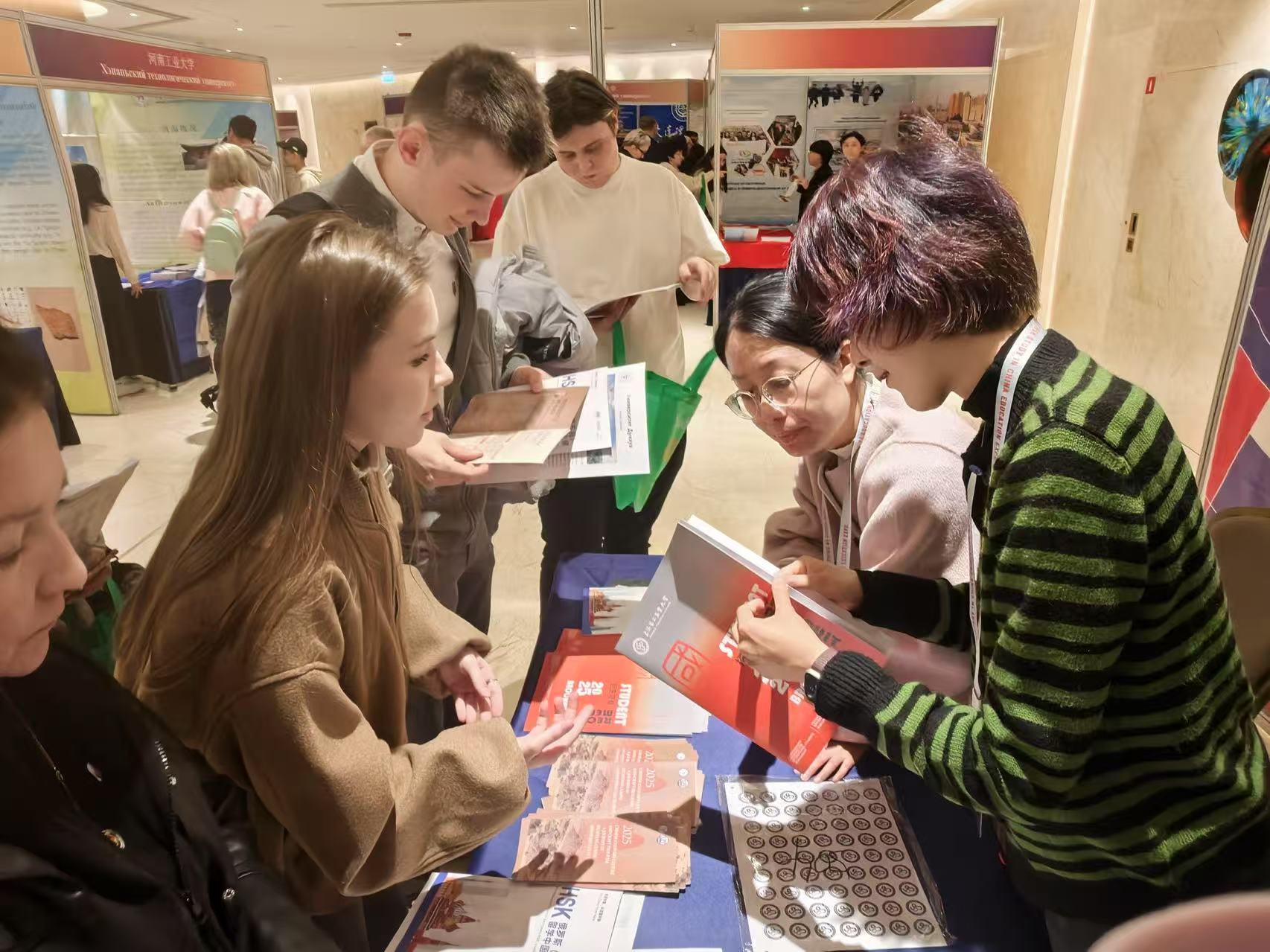 此次展会规模宏大,吸引了中俄50余所高校的200余名代表参会,更有超过5000名俄罗斯中文学习者和教育相关人士前来观展。展会上,我校展台吸引了当地众多学生和教育同行的咨询,现场气氛热烈。我校代表与学生及家长进行了面对面交流,展示了学校留学生教育的各类成果,现场解答了关于学校的办学特色、学科优势、师生规模、留学生招生入学条件、奖学金政策、在校学习生活等方面的问题。同时,当场建立“留学二工大微信咨询群”,重点解答了多名意向学生的提问,吸引优秀国际学生来我校学习深造。