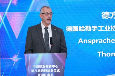 德国哈勒手工业协会主席Heinz Thomas Keindorf在致辞中表示,协会与我校之间的职业教育培训合作,既是知识与经验的交流,更是友谊与和互信的桥梁,高质量的培训项目离不开双方多年的努力与付出,希望未来可以在更广泛的领域寻求更多合作,延续这份深厚情谊。